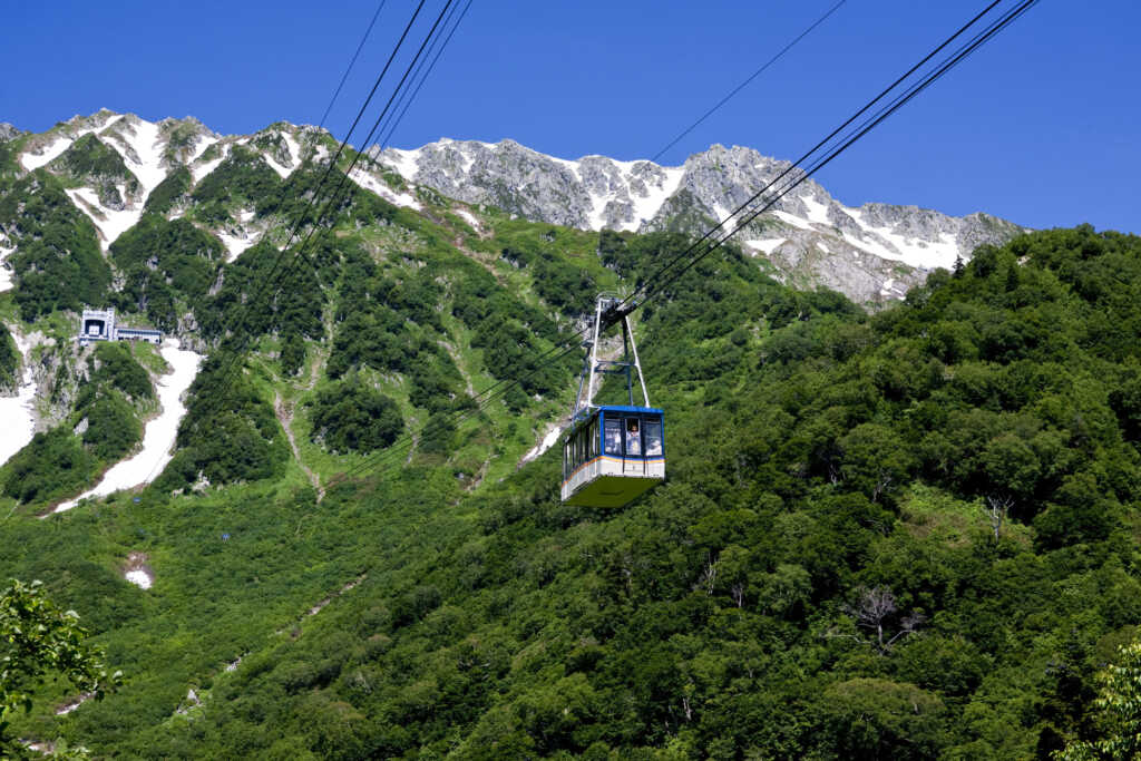 立山黒部アルペンルートのイメージで、立山ロープウェイ。乗車して西向きに見上げれば、目の前に立山連峰東壁が聳えている。写真提供:(公社)とやま観光推進機構