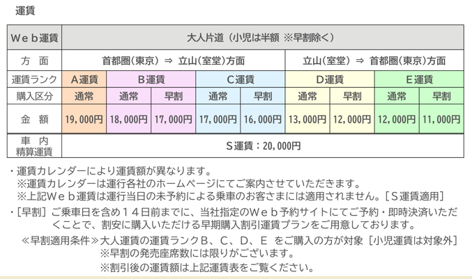 運賃は下図の通り。 ■乗車券の予約・購入方法